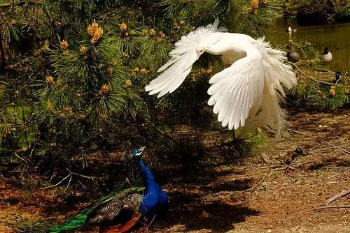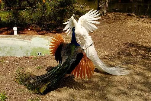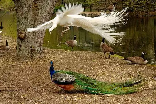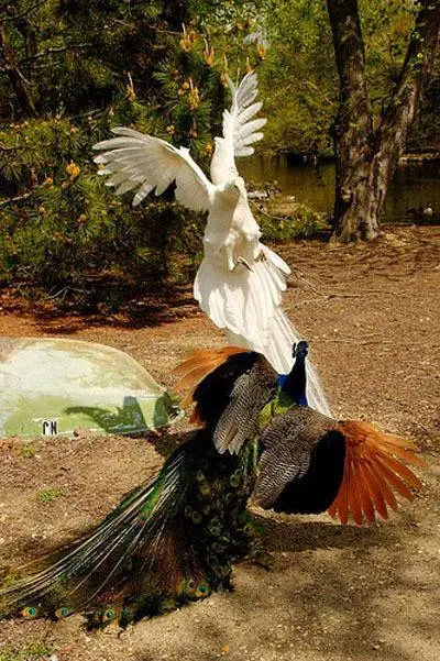 嘿,你见过孔雀,但一定没见过孔雀飞行吧?连打架都超美的哟!快来围观吧!