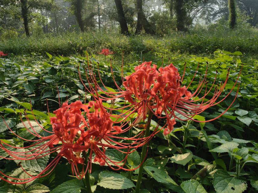 石蒜(Lycoris radiata),俗名蟑螂花、龙爪花。浙江丽水九龙国家湿地公园。