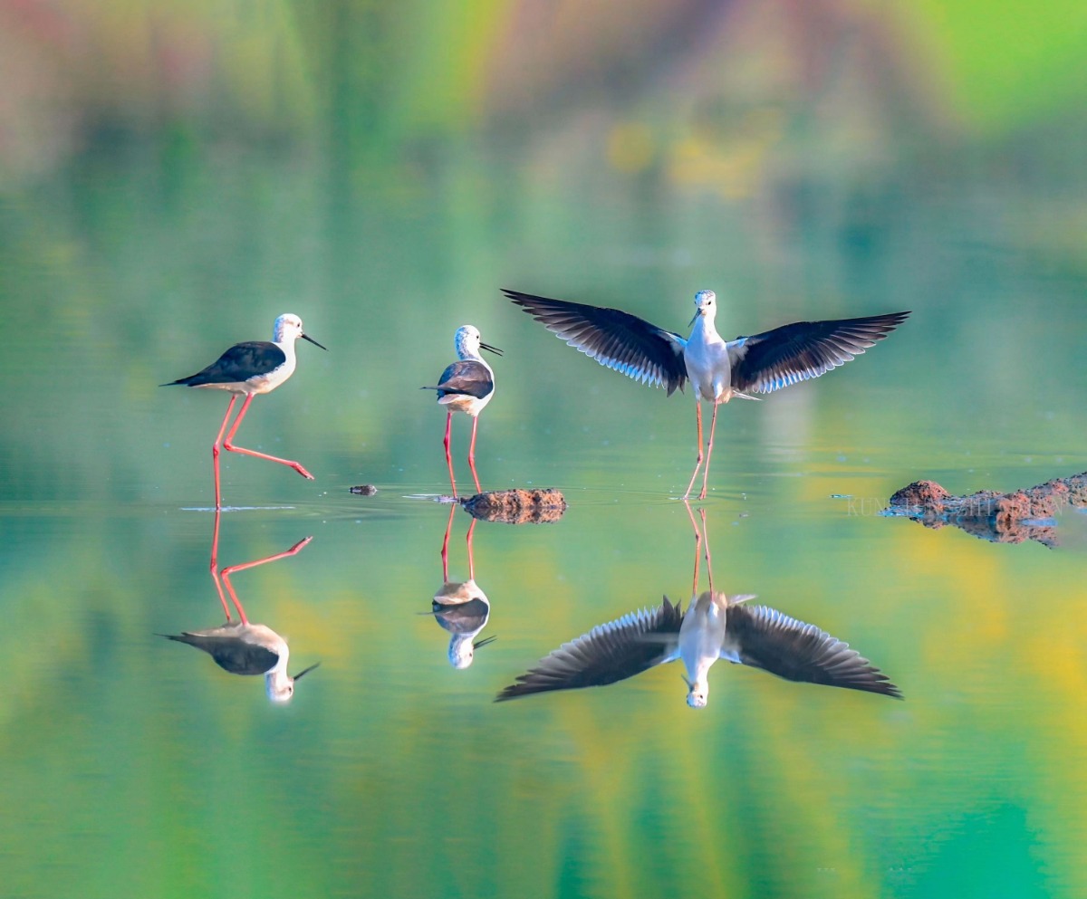 黑翅长脚鹬:湖北孝感朱湖国家湿地公园