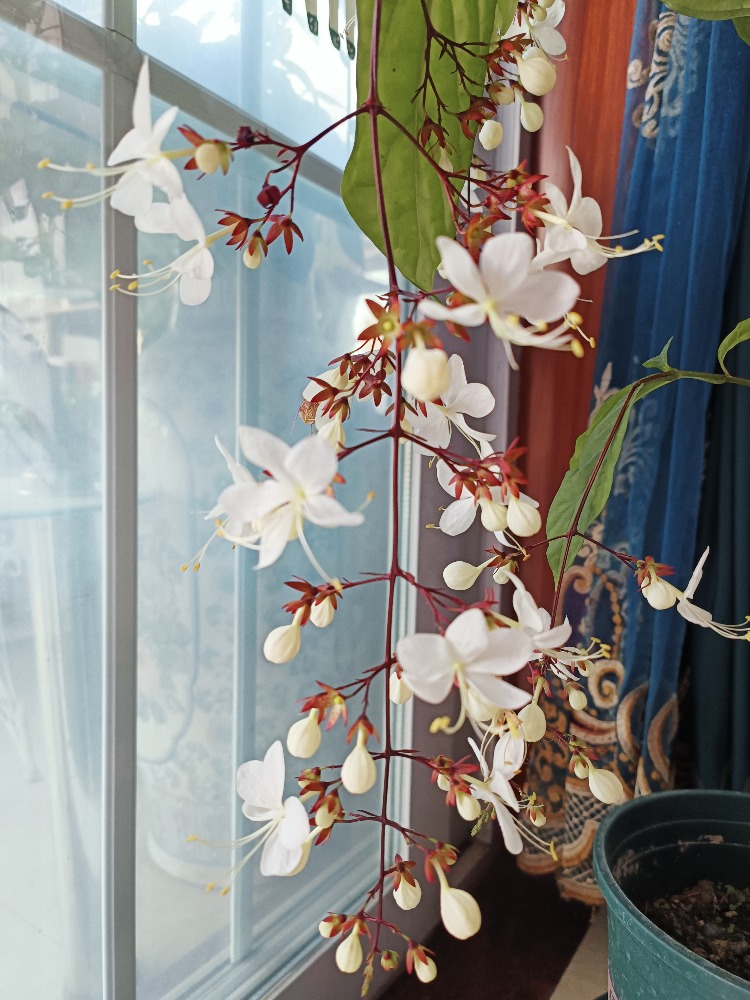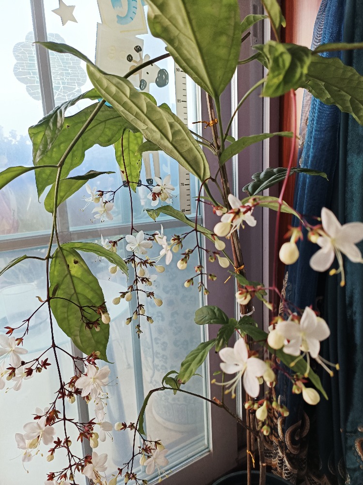 垂茉莉<br>拉丁学名:Clerodendrum wallichii Merr.<br>别名:黑叶龙吐珠、节枝常山<br>目:管状花目<br>科:马鞭草科<br>属:大青属<br>拍摄地:东阳市兴平东路302号1单元502室<br>拍摄时间:2022年11月26日<br>