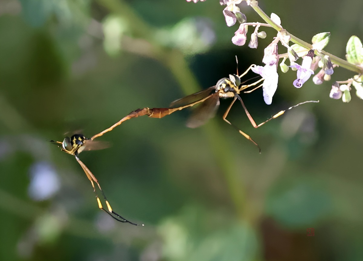 弯斑姬蜂虻(雄左雌右)