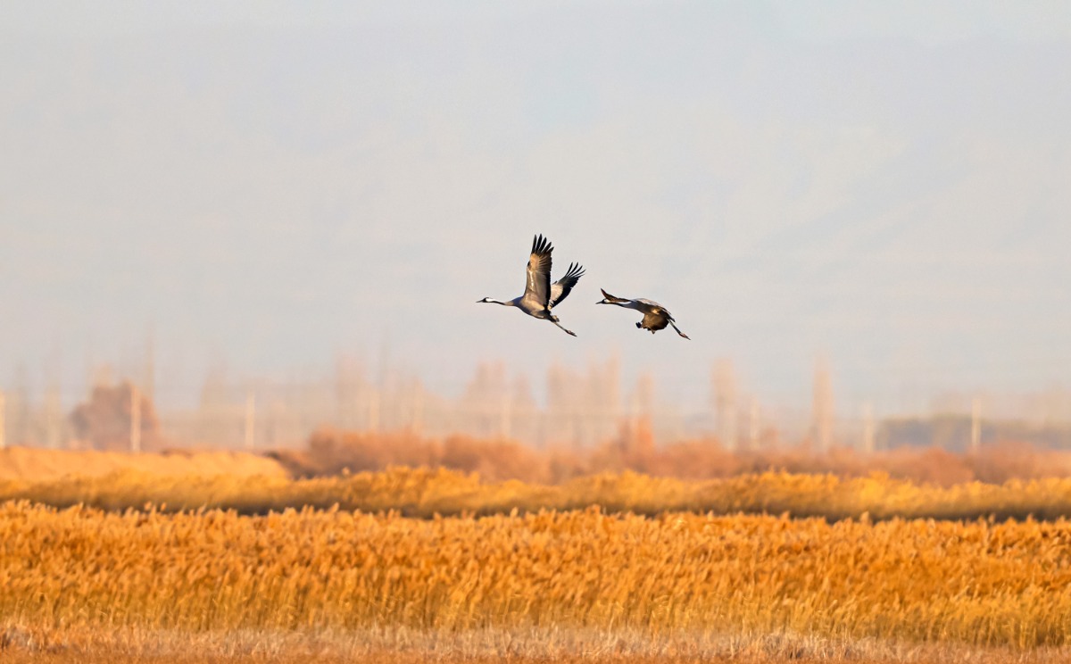 灰鹤:张掖黑河湿地国家级自然保护区