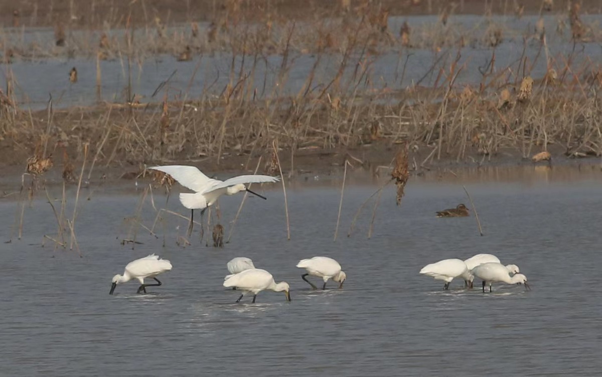 白琵鹭:湖北孝感朱湖国家湿地公园