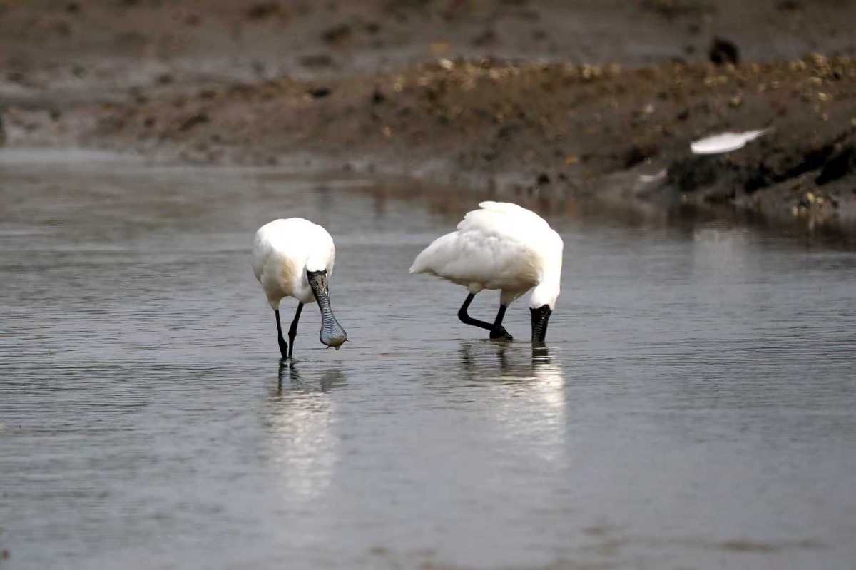 黑脸琵鹭:湖北孝感朱湖国家湿地公园