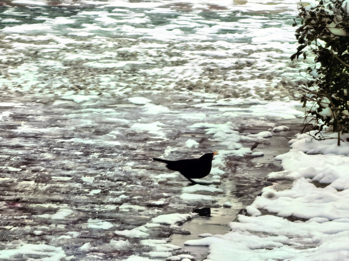 (不会吃雪解渴的)乌鸫