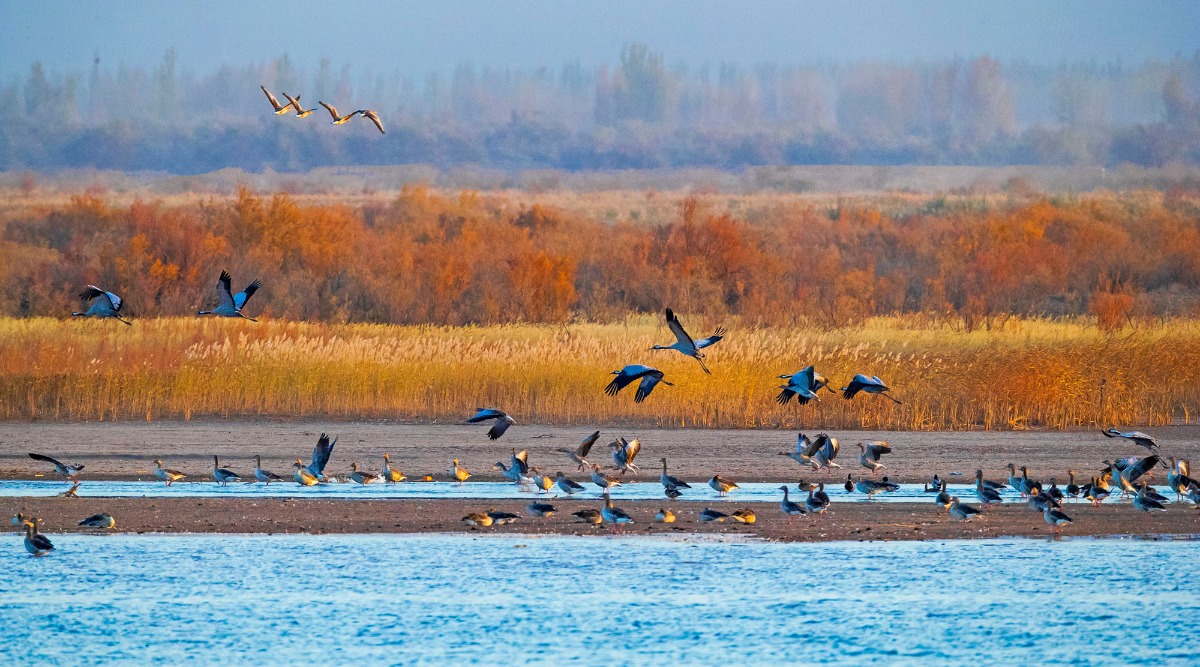 灰鹤:张掖黑河湿地国家级自然保护区