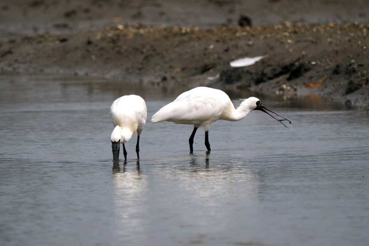 黑脸琵鹭:湖北孝感朱湖国家湿地公园
